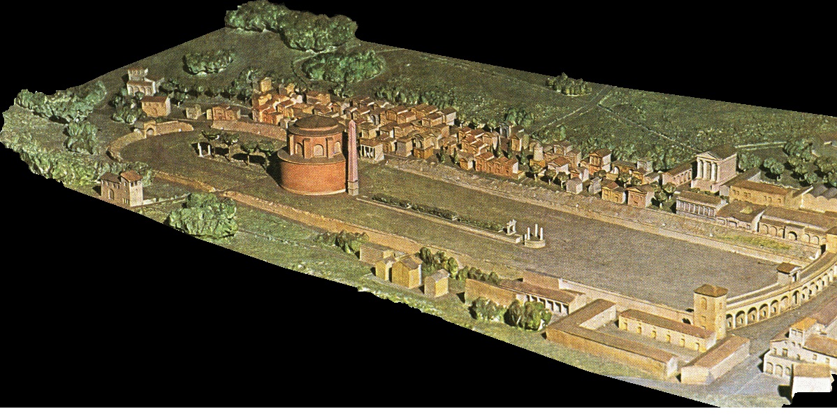 Nero's circus was a chariot track used for racing. Since the circus could hold thousands of people, Nero used the circus to execute Christians in front of large audiences. No one knows exactly what Nero's circus looked like, but these two drawings and one model helps us visualize the chariot track might have been. Somewhere at the circus stood the Egyptian obelisk. Most likely at the center of Nero's elliptical track stood the Egyptian obelisk of red granite, 84 feet tall.